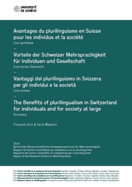 Un rapport du Centre scientifique de compétence sur le plurilinguisme, Institut de plurilinguisme, Fribourg, 2024